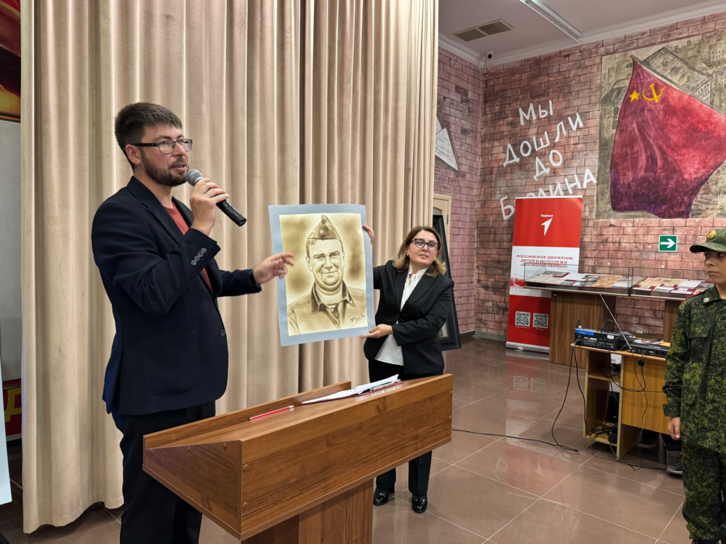 За день до презентации в Махачкале выставка прошла и в Дербенте, в музее боевой славы. Там было представлено более 60 работ, большинство из которых — портреты дагестанских героев.