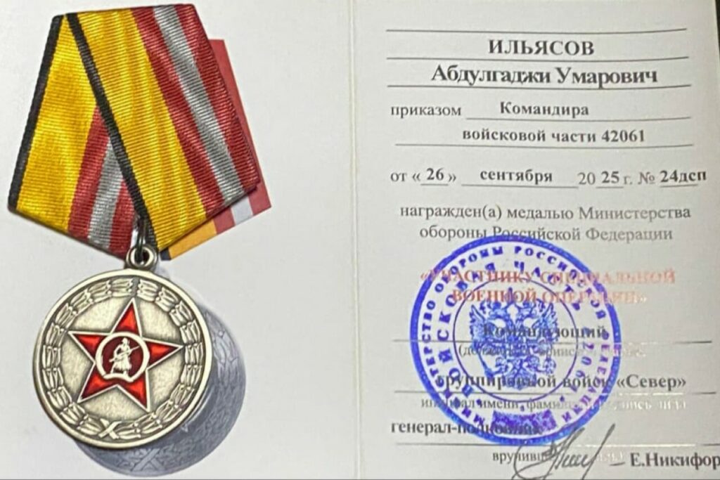 Абдулгаджи Ильясов из с. Гамиях награждён медалью «Участнику СВО»