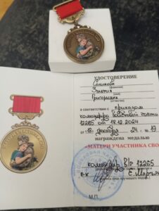 Совсем недавно была вручена медаль «Матери участника СВО» Зульфии Григорьевне Саликовой, матери защитника.