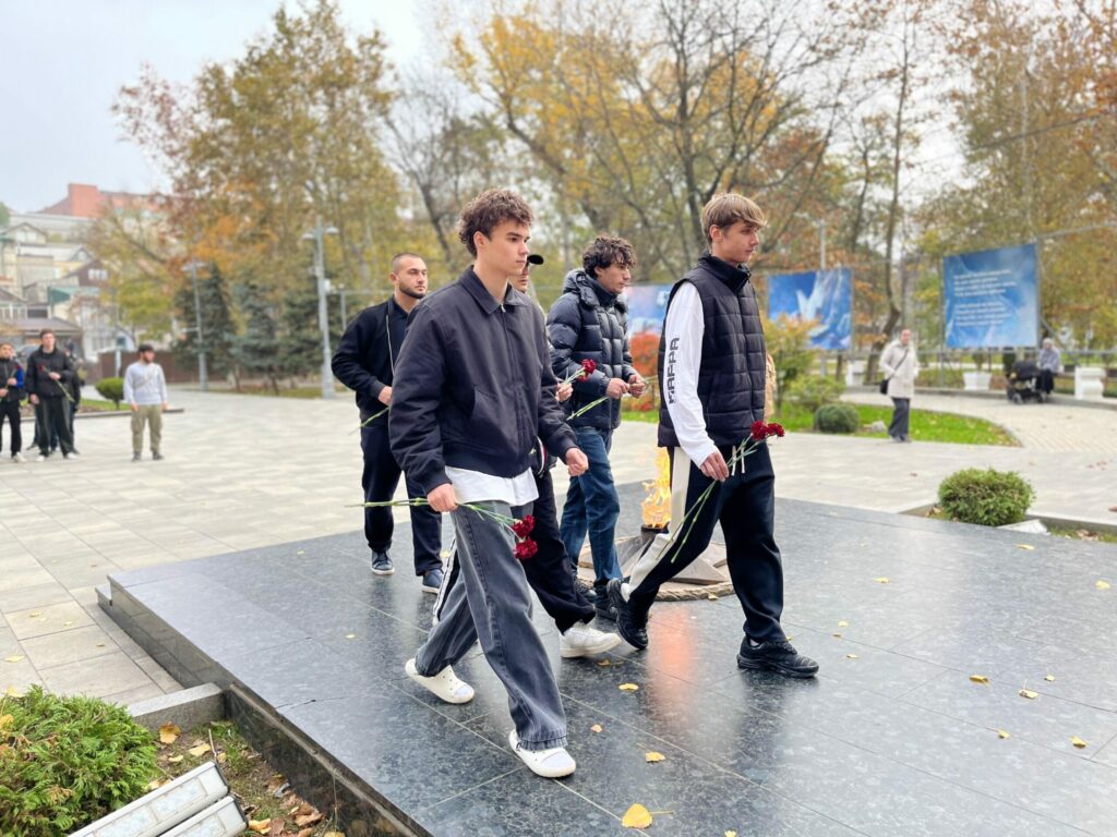 Финалисты «Лиги Первых» в Махачкале возложили цветы к памятнику Воину-освободителю