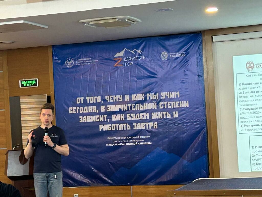 Участники программы «Доблесть гор» прослушали лекцию об экономическом суверенитете страны. Тема лекции — «Россия в мировой экономике. Экономический суверенитет страны». В качестве спикера выступил академический директор программы Егор Хаценко. Он является доктором экономических наук из ВШГУ РАНХиГС.