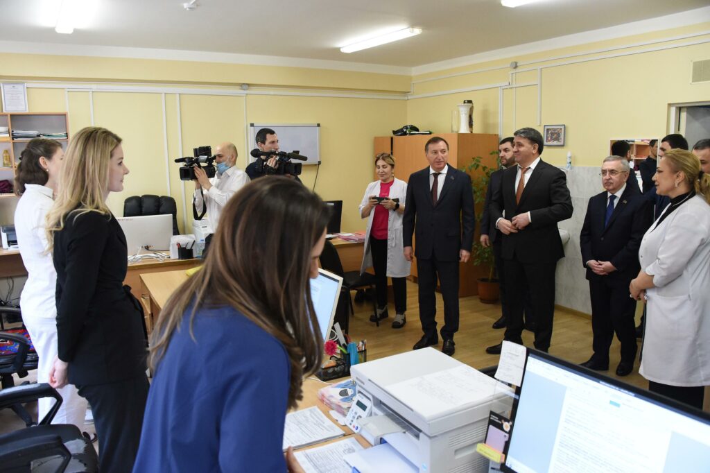 Затем Заур Аскендеров и Джамбулат Салавов встретились с медицинскими работниками. Спикер отметил, что здесь трудятся люди большого сердца и выдержки. Он назвал коллектив высокопрофессиональным, сочетающим практику и науку. Благодаря их усилиям онкология сегодня не приговор. Важна также стойкость родителей и новые технологии.