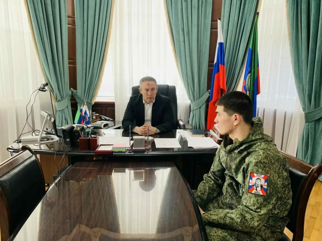 Глава Ногайского района Джамалутдин Эсиргепов провел встречу с участником специальной военной операции Исой Нурманбетовым.