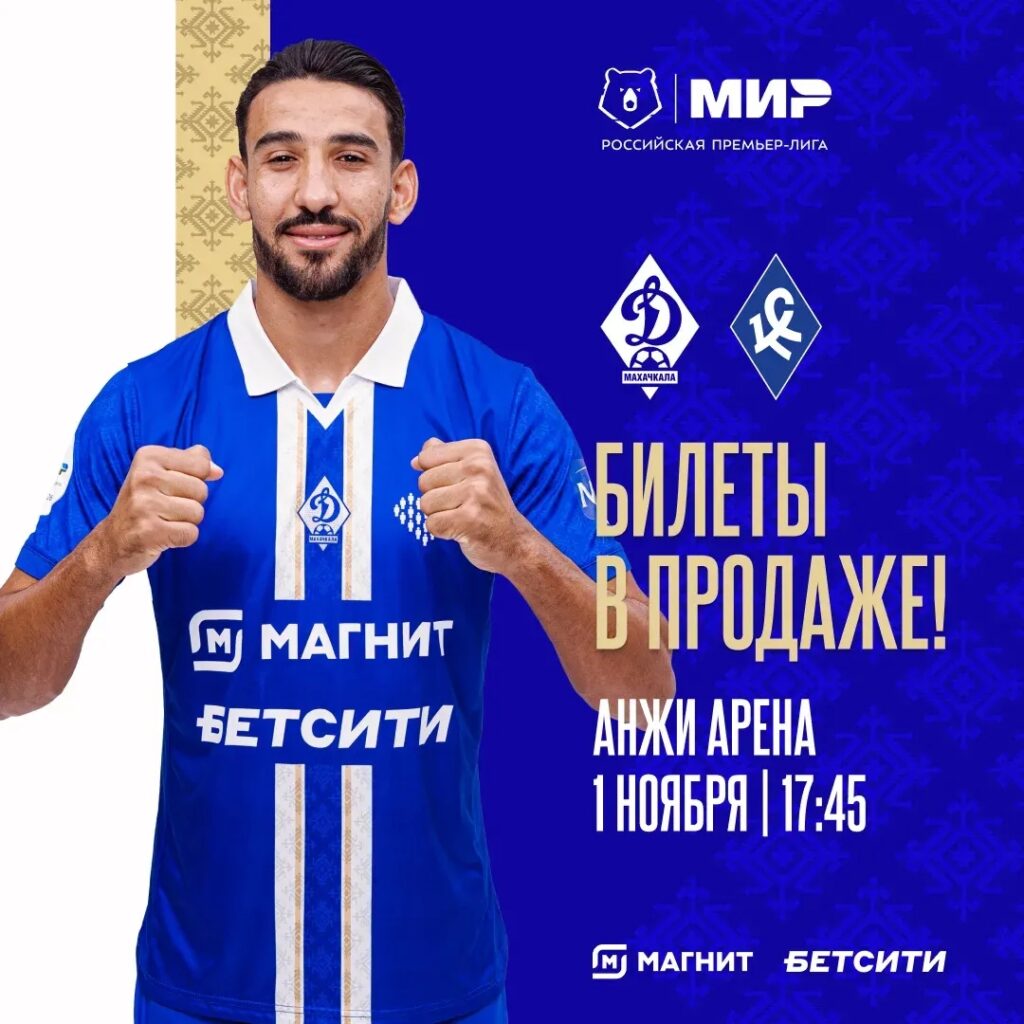 Билеты на игру можно купить на официальном сайте «Динамо» (https://qtickets.ru/event/194666) и в кассах «Анжи Арены».